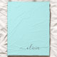 Aqua Blue Teal Modern Script Girly Monogram Name Fleece Blanket