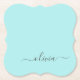 Aqua Blue Teal Modern Script Girly Monogram Name Paper Coaster