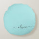 Aqua Blue Teal Modern Script Girly Monogram Name Round Cushion