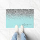 Aqua Blue - Teal Silver Glitter Monogram Doormat
