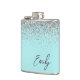 Aqua Blue Teal Silver Glitter Monogram Hip Flask