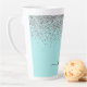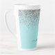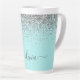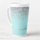 Aqua Blue Teal Silver Glitter Monogram Latte Mug