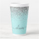 Aqua Blue - Teal and Silver Faux Foil Metallic Sparkle Glitter Script Monogram Name Latte Coffee Cup Mug. This makes the perfect sweet 16 birthday, wedding, bridal shower, anniversary, baby shower or bachelorette party gift for someone that loves glam luxury and chic styles.
