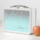 Aqua Blue - Teal and Silver Sparkle Glitter Brushed Metal Monogram Name Lunch Box. This makes the perfect sweet 16 birthday or going back to school gift for someone that loves glam luxury and chic styles.