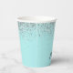 Aqua Blue Teal Silver Glitter Monogram Paper Cups