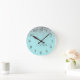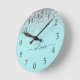 Aqua Blue Teal Silver Glitter Monogram Round Clock
