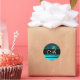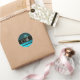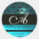 AQUA BLUE TURQUASE AQUAMARINE DAMASK MONOGRAM CLASSIC ROUND STICKER