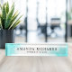 Elegant name plate with your name and title on an aqua blue watercolor background.