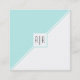 Aqua blue and white architect business cards with monogram. The front includes two diagonal stripes one aqua blue and one white that separate the card in two triangles. A white square is on the centre with your monogram.