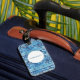 Aqua Blue White Tribal Stripes Dots Luggage Tag