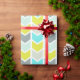 Aqua Blue Yellow Grey Geometric Chevron Pattern Wrapping Paper