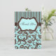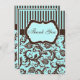 This chic and stylish aqua blue, brown, and white stripes with floral damask invitation style thank you card is on basic white paper and matches the wedding invitation shown below. The text and paper choice is customisable. There is also a greeting card style, if you prefer that. If you would like a card like this, but with a photo template box on it to add your wedding photo to, just email me about it. If you require any additional matching items, please email niteowlstudio@gmail.com with your request.
