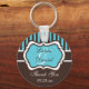This aqua blue, brown, and white striped wedding favor keychain matches the wedding invitation shown below. All the text is customizable, and you can also select the premium silver style and/or change the shape to a square.