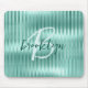 Aqua Brushed Metal Stripes Script Monogram Mouse Pad