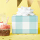 A classic buffalo check pattern in aqua and white makes a nice all occasion gift wrap.