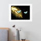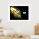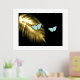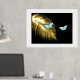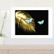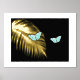 Elegant foil print featuring a golden foil palm frond, with two aqua coloured butterflies, against a black background. Beautiful print for any nature lover.