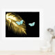 Aqua Butterflies on Golden Palm Frond Foil Prints
