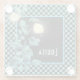 Dramatic and elegant design features aqua and black checkboard background, luminescent white rose floral bouquet and customisable name.