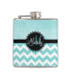 Aqua Chevron Glitter Monogram Flask