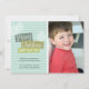A contemporary aqua chevron pattern enables three green tonal panels holding the text "Merry Christmas" and "Happy New Year" to stand out. Each has a slight transparency so that the chevron pattern is seen behind it. White filigree Christmas ornaments hang down just touching the panels. Add your photograph and customise the text underneath. Available in alternate colours with matching products.