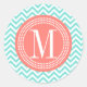 Aqua Chevron Zigzag Personalised Monogram Classic Round Sticker