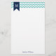 Aqua Chevrons Pattern and Blue Monogram Stationery