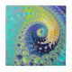 Aqua Cobalt and Yellow Spiral Fractal Abstract Tile