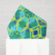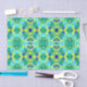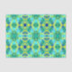 Tissue paper in a tie dye pattern in shades of cobalt blue, green and yellow with an aqua / seaglass green background