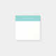 Elegant square notes feature your name and/or business name in classic white lettering on a colorblock band of vibrant turquoise aqua for a chic and modern addition to your desk, office or home.