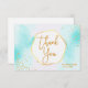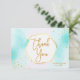Aqua Cyan Blue Watercolor Gold Glitter Thank You Card