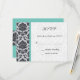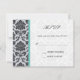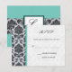 Aqua Damask Monogram Wedding RSVP Card