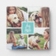 Show off your dog mom status with this cute photo collage plaque featuring four square photos of you and your pup. "Dog Mom" appears in the center in white hand lettered typography on a turquoise aqua square.