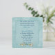 Daisy bouquet with pearls on aqua floral embossed wedding invitation.