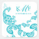 Aqua Floral Paisley White Peacock Wedding Favour Square Sticker