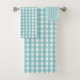 Aqua gingham check pattern. Your can personalise this design by changing the size of the pattern on each towel.