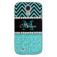 AQUA GLITTER BLACK CHEVRON MONOGRAM Case-Mate SAMSUNG GALAXY CASE