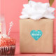 An aqua heart-shaped sticker featuring a pretty glittery pattern with a child's name on - ideal for kid's birthday parties or when a fancy name tag is required, for games, in the school room, children's craft activities and more. The name can be customised to suit - or removed altogether if desired.
