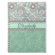 Aqua Glitter Paisley Rhinestone Print Pattern Spiral Notebook