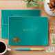 Aqua gold starfish seaside wedding return address envelope