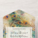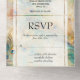 Aqua Green Gold Peacock Feathers Wedding All In One Invitation