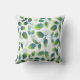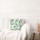 Pillow printed with abstract leaf pattern in aqua blue, green and white, from original watercolor painting.