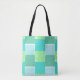 Lovely and simple design with trendy colours for spring and summer (aqua, turquoise and light green). These coloured tiles are made with alternating straight lines and irregular lines as faux batik. Customisable bag.