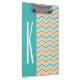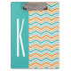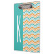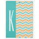 Cute, customisable white monogram on chic Aqua Green & Orange Chevron Stripes pattern. Cool, girly design with large, custom, vertical personalised monogram. Great trendy gift for kids, teens, teenagers, or adults!