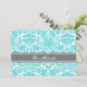 Aqua Grey Damask Bat Mitzvah Invitations