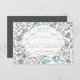 Aqua Grey Floral Pattern Blue Love Bird Wedding Invitation