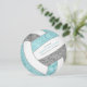 This cute volleyball birthday party invitation features a stylised volleyball graphic with aqua, grey and white panels, upon which you can customise her party details - the aqua and grey panels of the volleyball are blended with a pretty floral kaleidoscopic pattern for a textured appearance that is artsy and girly - by katz_d_zynes