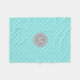 Aqua Grey Quatrefoil Pattern Monogram Blanket