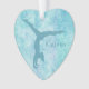 A silhouette aqua girl gymnast does a handstand on one side of this pretty ornament. Her name is at the right of the gymnast figure. Everything is placed on a lighter teal swirl abstract background that has touches of pale lavender. The back of the ornament has a heart shaped white field with more text fields for you to customise. The text field is framed with a faux diamond heart frame, which is then placed on the same aqua swirl background as the front of the ornament. Beautiful and personalised for any girl gymnast!