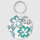 Aqua Hibiscus Blooms Key Ring