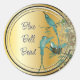 Gold and Teal Blue Cute Hummingbird Family Swirl Baby Bird in Nest Daddy Bird looking over Baby Mummy right there too. Fairycore Cottagecore Cottage Chic cuteness on a lovely sticker just for you.